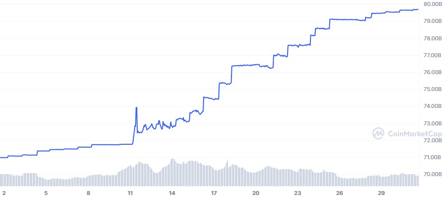 Kenaikan USDT juga ikut didorong oleh keputusan Paxos untuk menghentikan penerbitan Binance (USD) BUSD setelah dipermasalahkan oleh regulator AS. Stablecoin terbesar ketiga itu langsung mengalami penurunan tajam kapitalisasi pasar dari $16 miliar pada awal Februari, menjadi $7 miliar saat ini.
