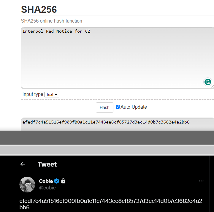 Menurut CryptoSlate, rumor ini pertama kali disebar oleh host podcast UpOnly, Jordan Fish, yang dikenal dengan nama panggung Cobie. Pada 5 April 2023, ia mencuit sebuah kode enskripsi di Twitter, yang setelah dideskripsi, tertulis “Interpol Red Notice for CZ.”