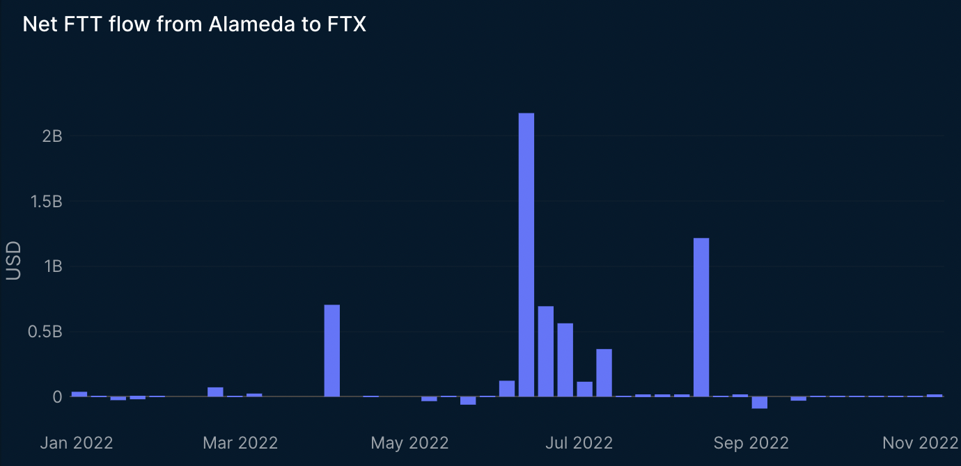 Menurut Nansen, wallet Alameda Reseach sudah berinteraksi dengan sebuah wallet yang kemudian menjadi wallet FTX, sebelum FTX resmi beroperasi pada Mei 2019. Keduanya sama-sama didirikan oleh Sam Bankman-Fried.