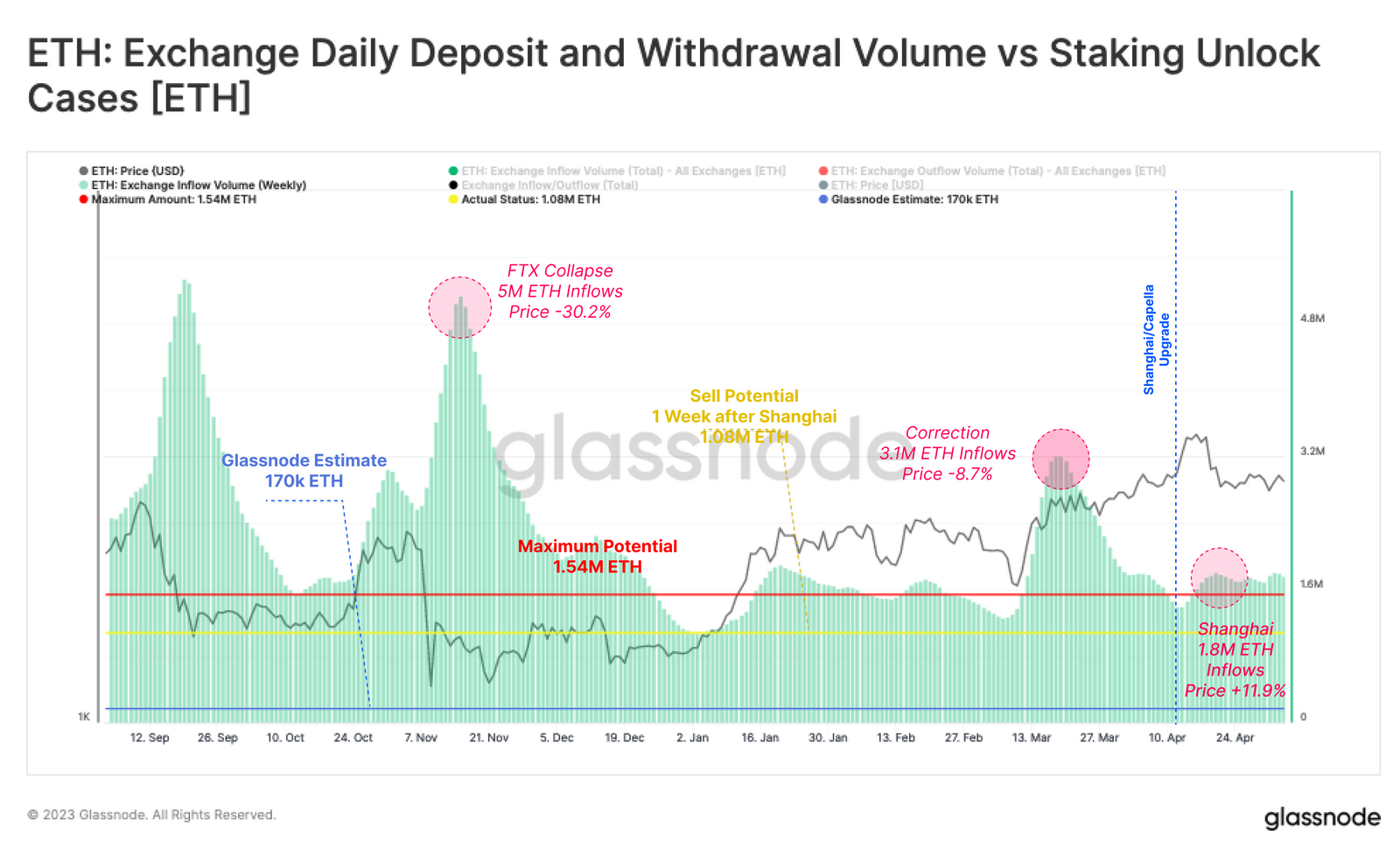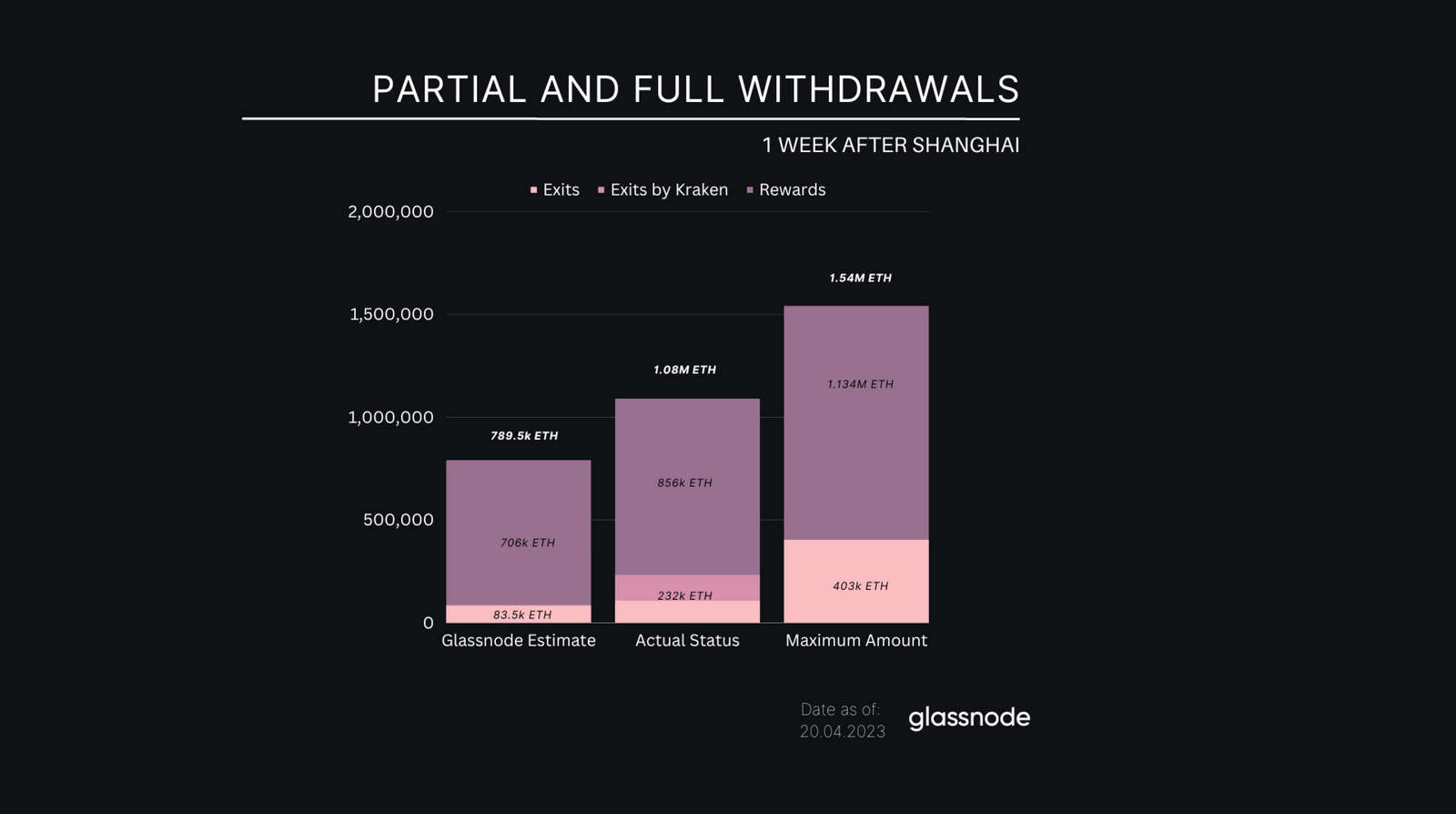 Dalam laporan mingguan pada 11 April 2023, Glassnode memperkirakan, sepekan setelah Shanghai Upgrade, ada total 789.500 ETH yang akan ditarik dari Beacon Chain dalam sepekan. Dan 170.000 ETH di antaranya akan dicairkan oleh validator.