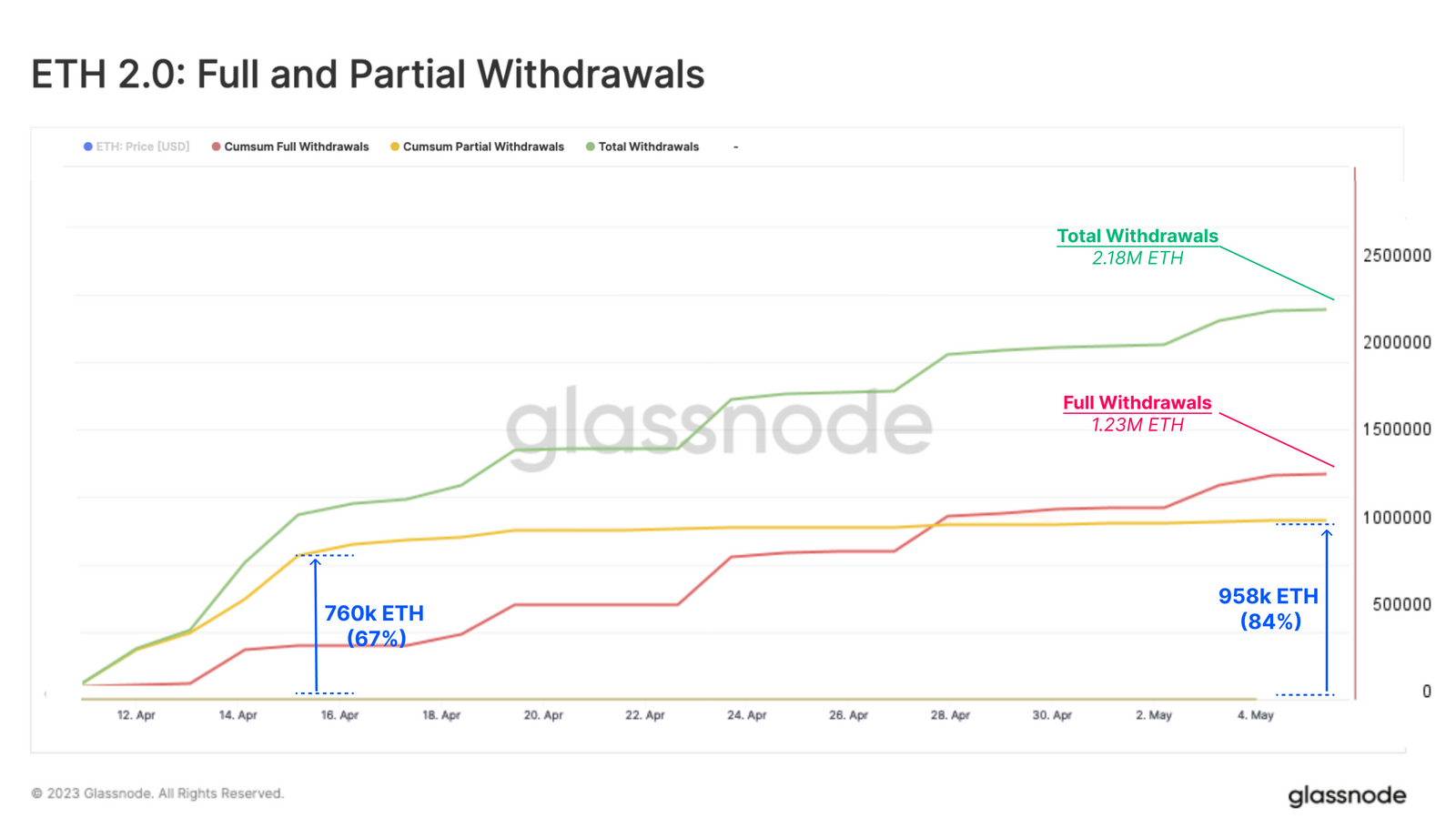 Jumlah ETH yang ditarik dalam metode penarikan penuh dan penarikan sebagian. (sumber: Glassnode)