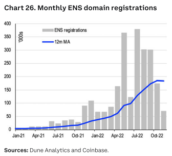 Satu lagi koleksi NFT yang berhasil mencuri perhatian karena terus tumbuh meski pasar bergejolak, yaitu Ethereum Name Service (ENS). ENS merupakan contoh kegunaan NFT di luar karya seni berbentuk image.