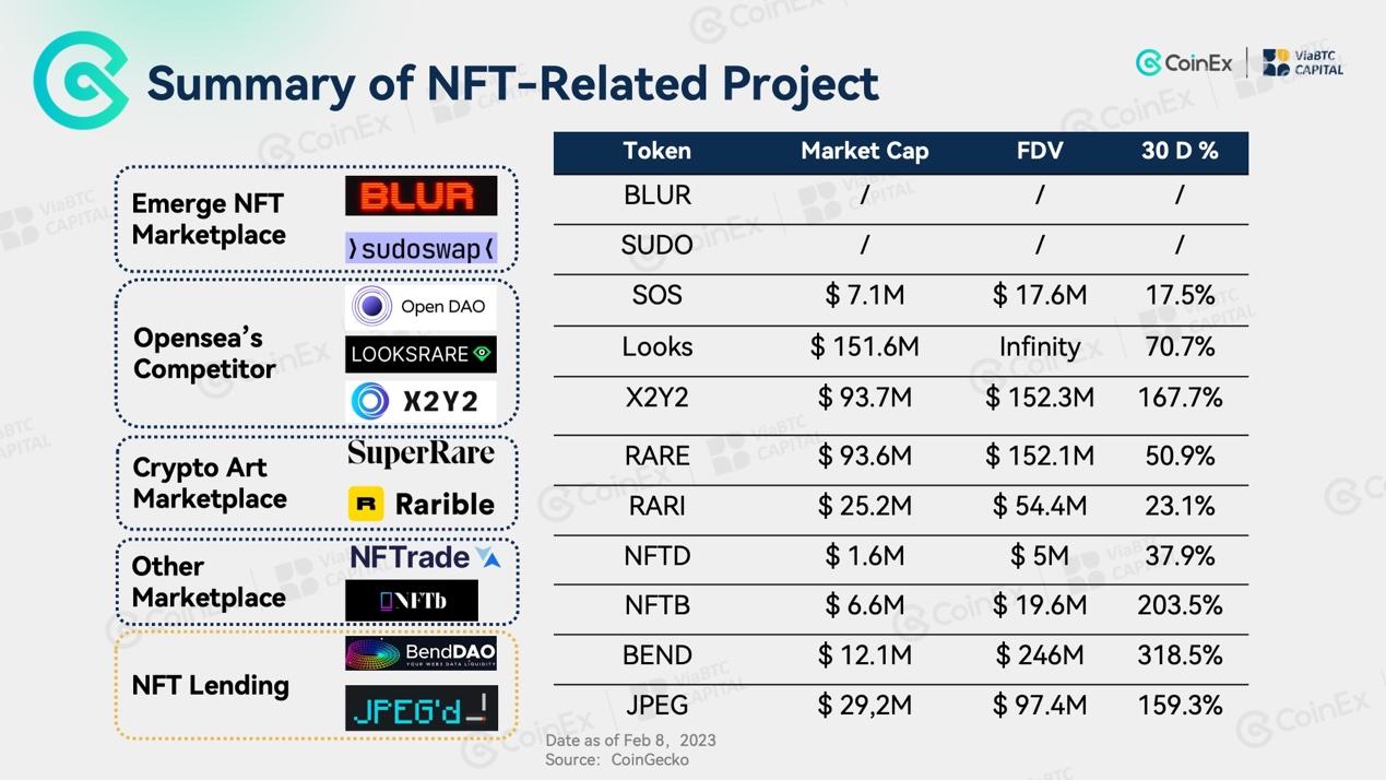 Melalui tiga putaran airdrop dan fungsinya yang terus ditingkatkan, Blur telah menarik banyak pedagang NFT dan sekarang menempati peringkat di antara 3 market NFT teratas dalam hal volume perdagangan. Selain itu, BLUR token market akan diluncurkan pada 14 Februari, dan proyek berencana untuk mengalokasikan sebagian besar token ke komunitas, yang meliputi pedagang, kolektor, dan pembuat.