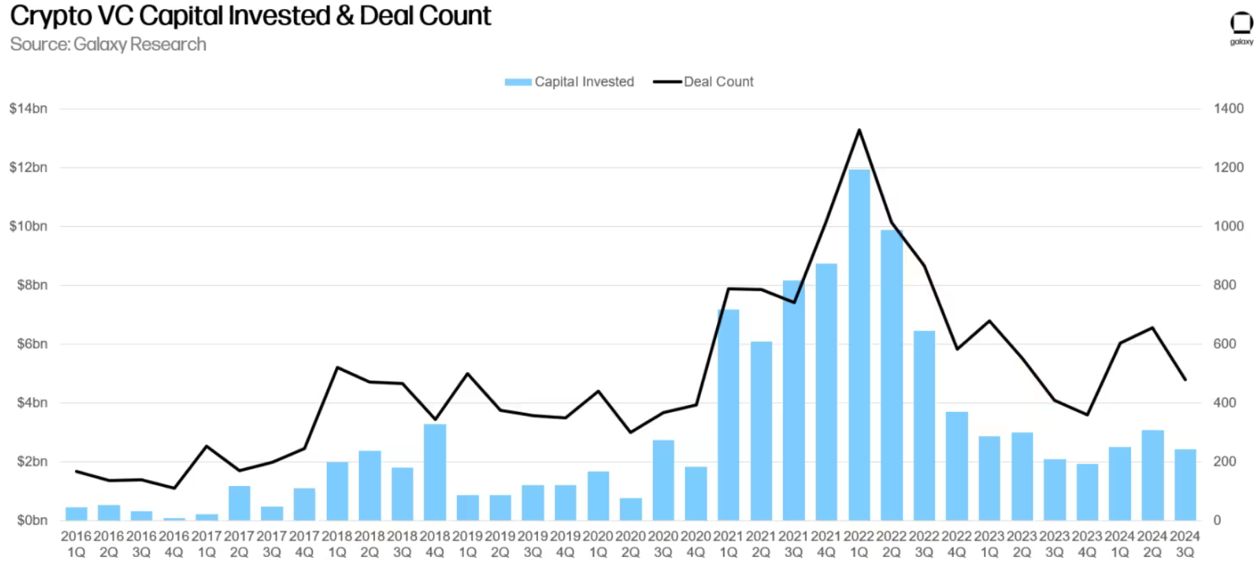 Galaxy memperkirakan bahwa pendanaan modal ventura dalam sektor crypto dapat “meningkat” pada Q4 dan Q1 2025, didorong oleh penurunan suku bunga dan kemungkinan pelonggaran regulasi.