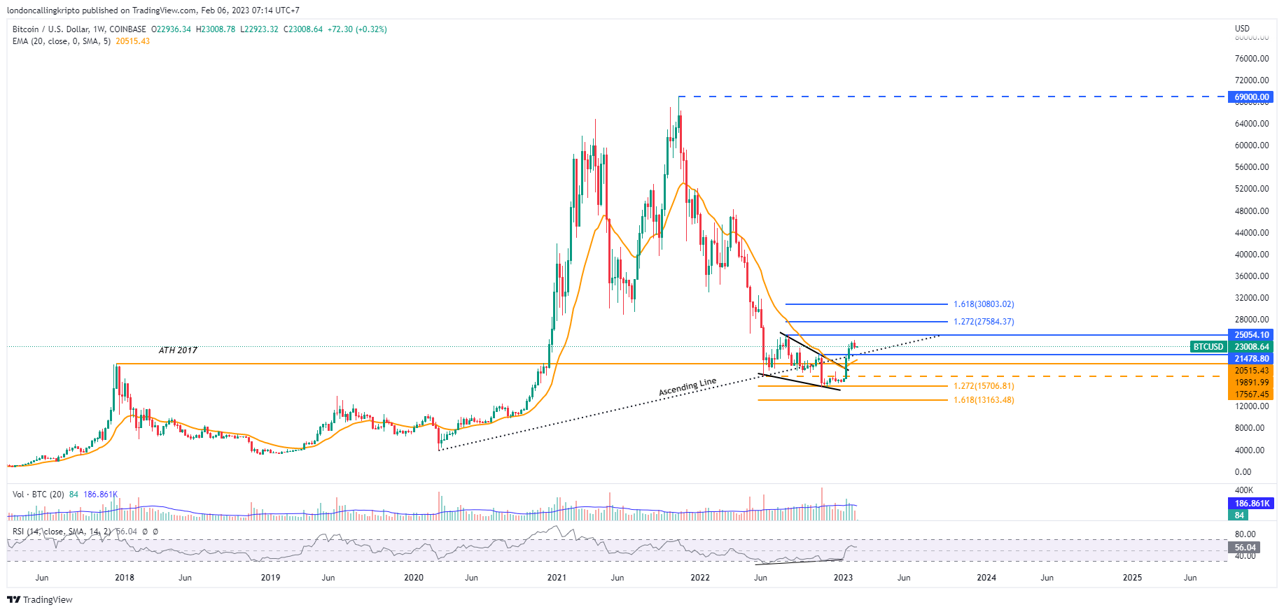 BTC/USD weekly chart Coinbase. Source: TradingView. By: Arli Fauzi.