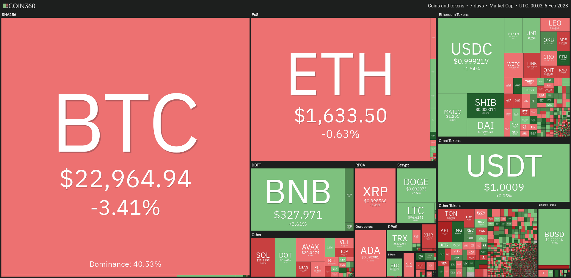 Weekly candle BTC pagi ini ditutup pada harga $22.936, level tertinggi berada pada harga $24.262 dan level terendah berada pada harga $22.500.