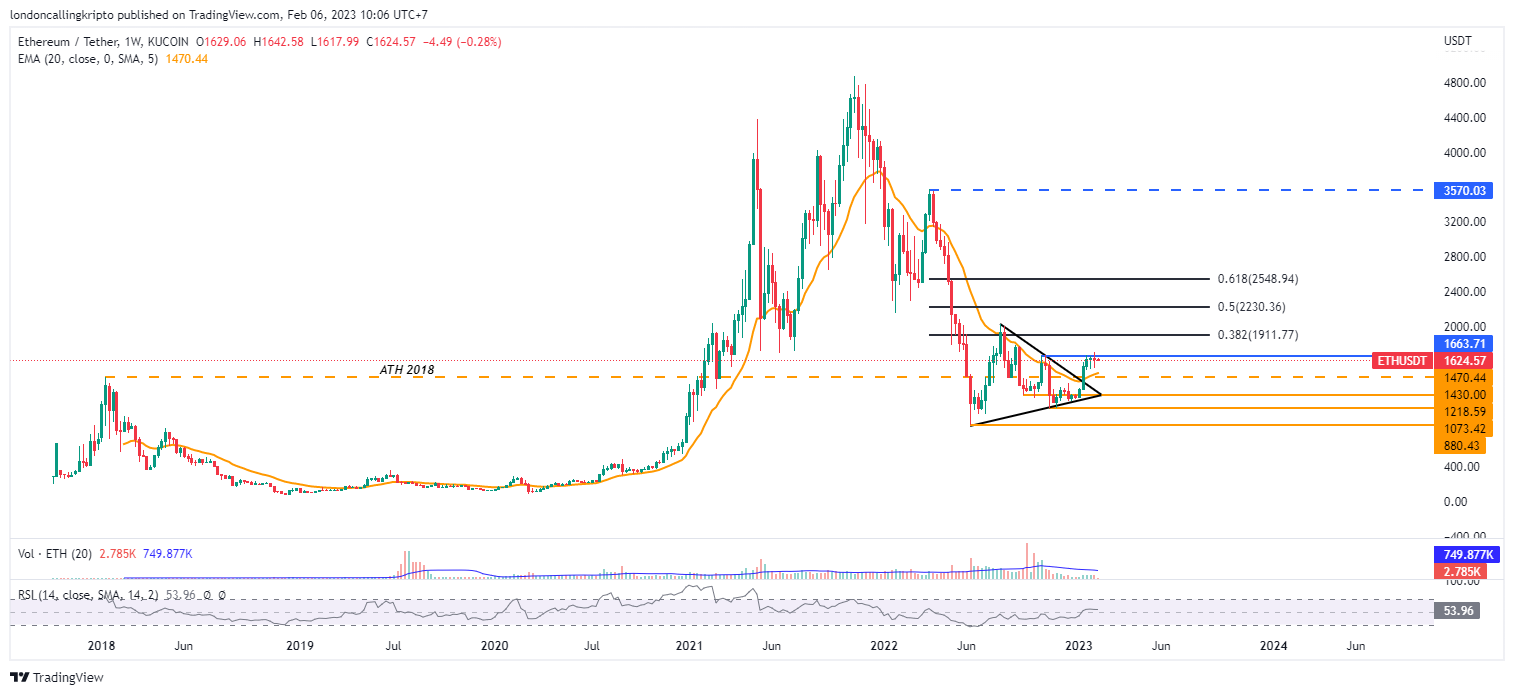 ETH/USDT weekly chart Kucoin. Source: TradingView. By: Arli Fauzi.