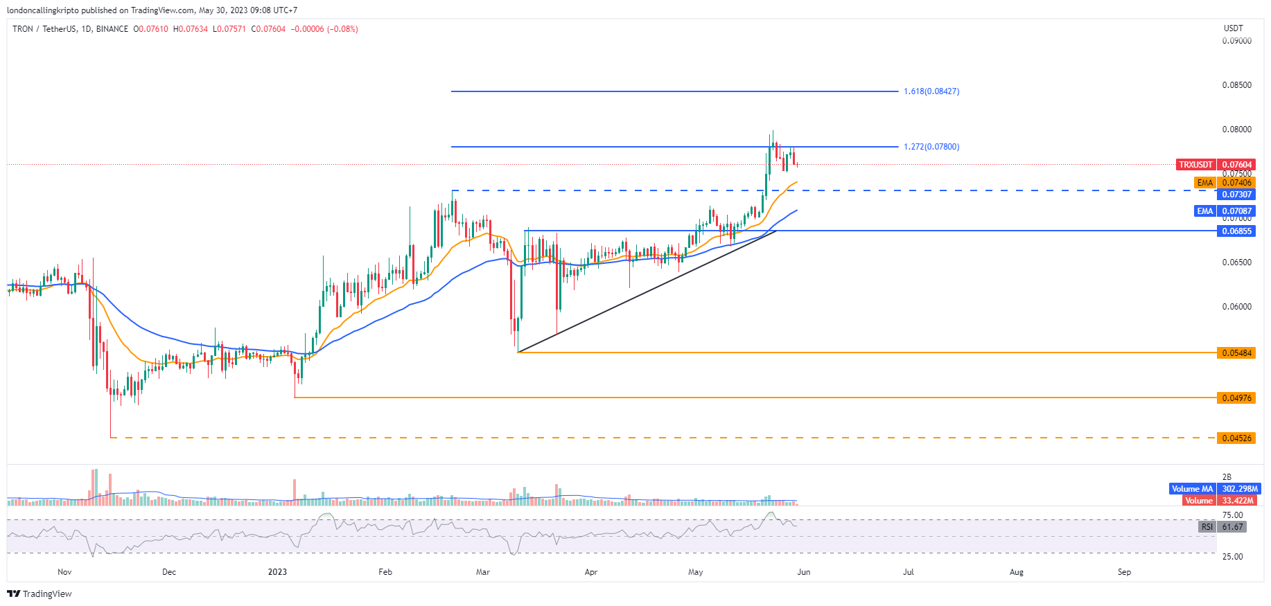 TRX/USDT daily chart Binance. Source: TradingView. By: Arli Fauzi.