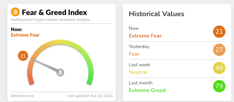 Berdasarakan Crypto Fear & Greed Index, bearish ini bertepatan dengan sentimen “ketakutan ekstrem” di seluruh pasar. Hanya satu bulan yang lalu, metrik tersebut mengisyaratkan “keserakahan yang ekstrem.”