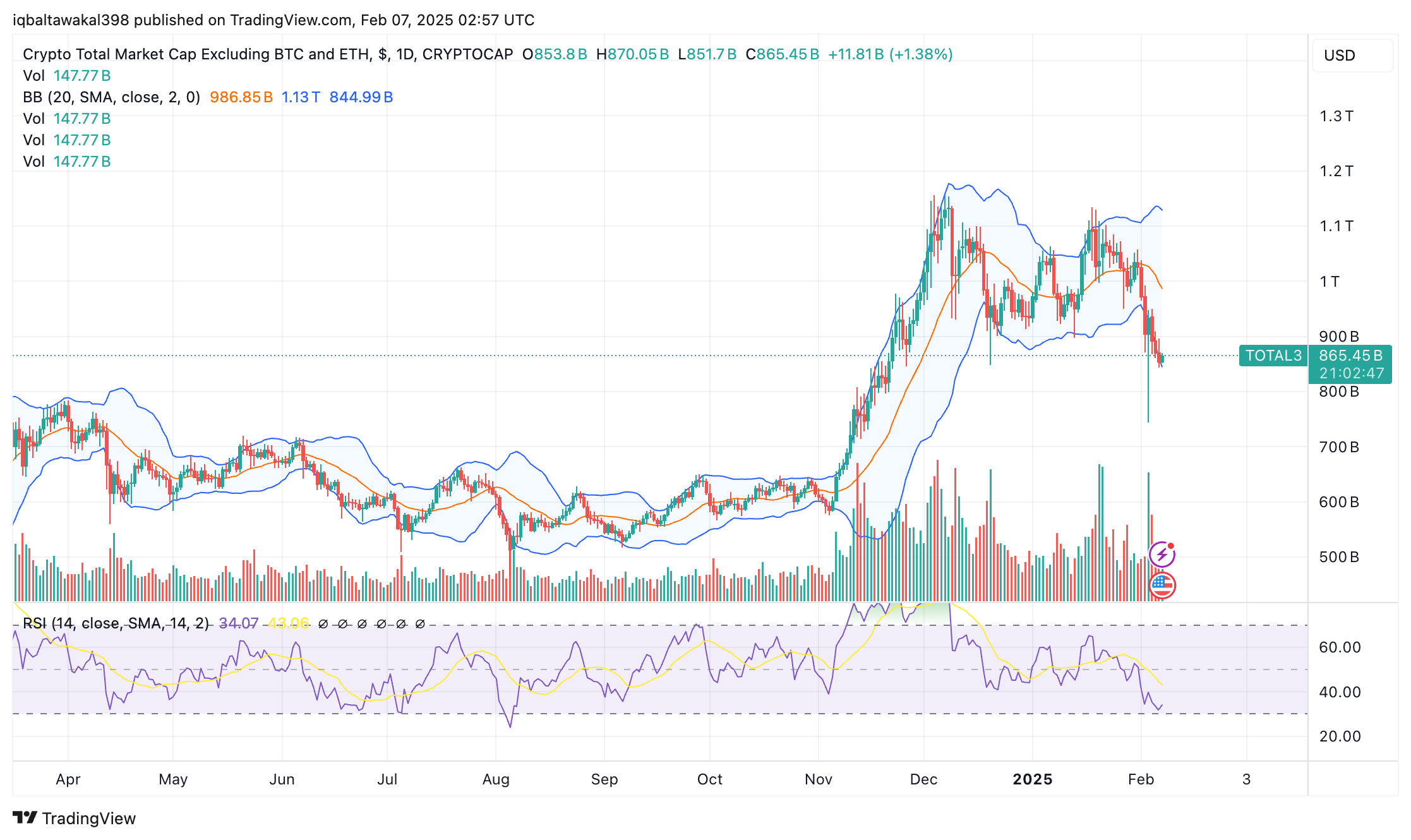 Saat peluncuran kedua token tersebut, pasar altcoin berdasarkan indek TOTAL3 (marketcap altcoin di luar BTC dan ETH) anjlok dari level $1.1 tribun ke $865 miliar.