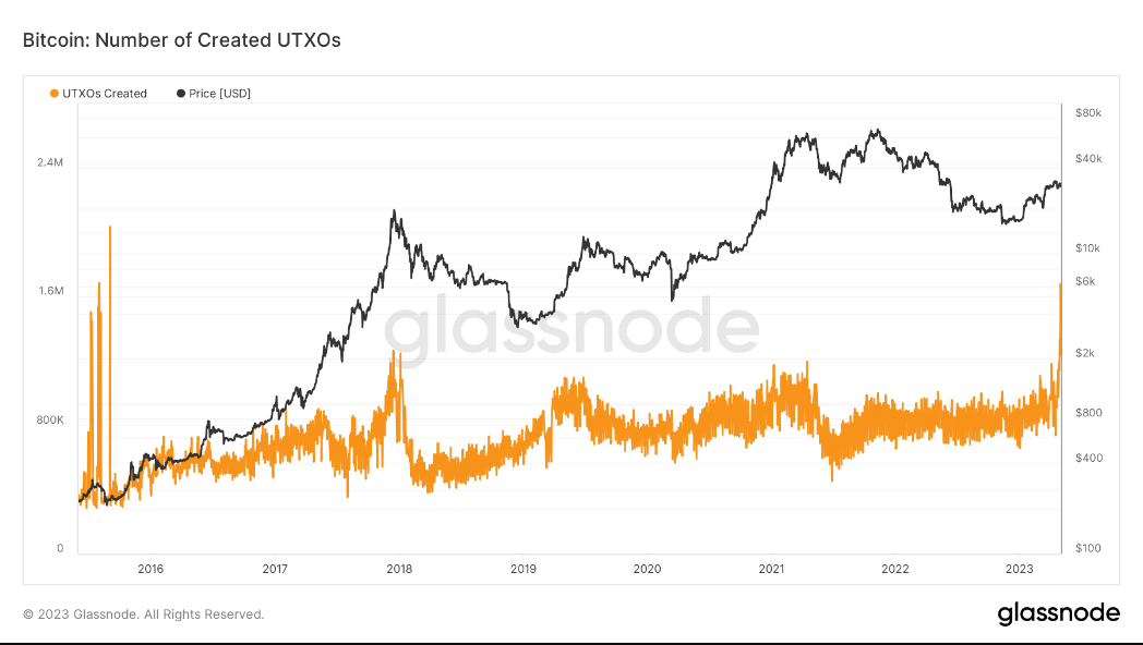 Lonjakan transaksi ini merupakan imbas dari inskripsi Ordinals di jaringan Bitcoin yang kini sudah melampaui 3 juta inskripsi. Inskripsi Ordinals semakin populer setelah muncul token standar Bitcoin Request for Comment (BRC-20) yang disebut juga inskripsi berbasis teks.