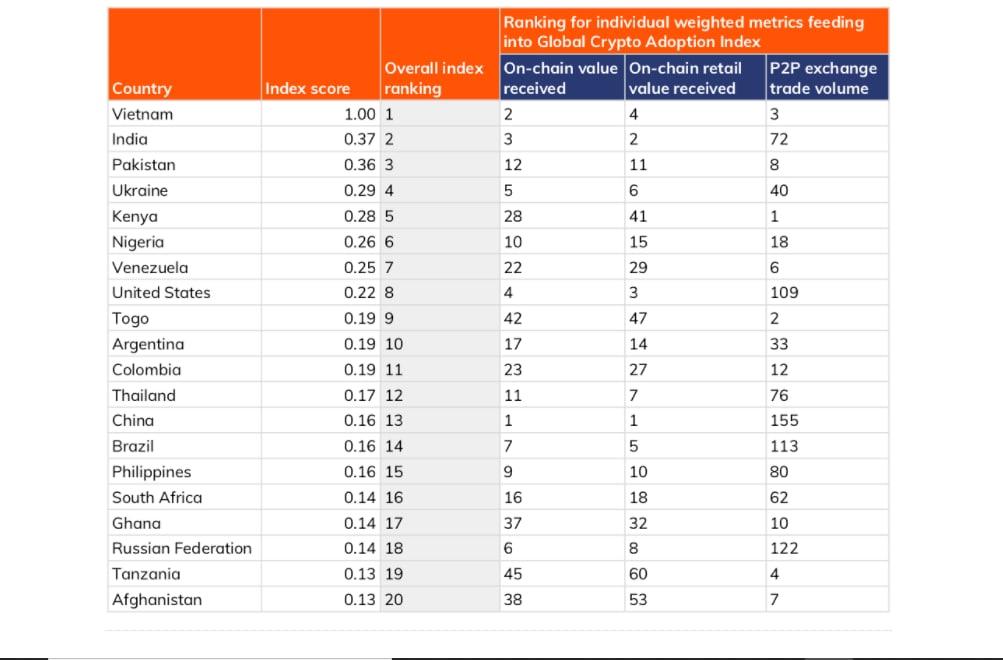 Dalam kurun waktu beberapa tahun terakhir ini, adopsi cryptocurrency di Afghanistan meningkat pesat. Hal ini dibuktikan dengan laporan Indeks adopsi crypto yang dikeluarkan oleh Global Chainalysis 2021, Afghanistan berada di peringkat ke-20.