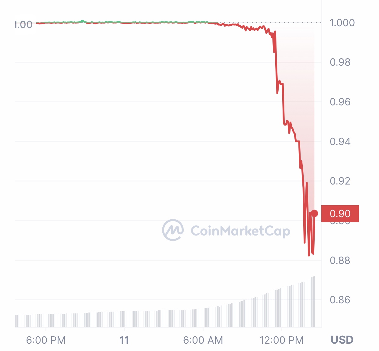 Kabar penutupan SVB membuat USDC, yang seharusnya berpasak 1:1 dengan dolar AS, mengalami depegging. Menurut CoinMarketCap, saat ini USDC diperdagangkan di $0,89.