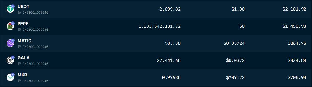 Wallet 0x2800 menerima PEPE perdananya sekitar 46,5 miliar PEPE pada 20 April. Koleksi saldo PEPE di wallet tersebut terus bertambah dan sempat mencapai 81,6 miliar PEPE. Namun saat ini, saldo mereka tersisa 1,13 miliar PEPE ata $1.450.