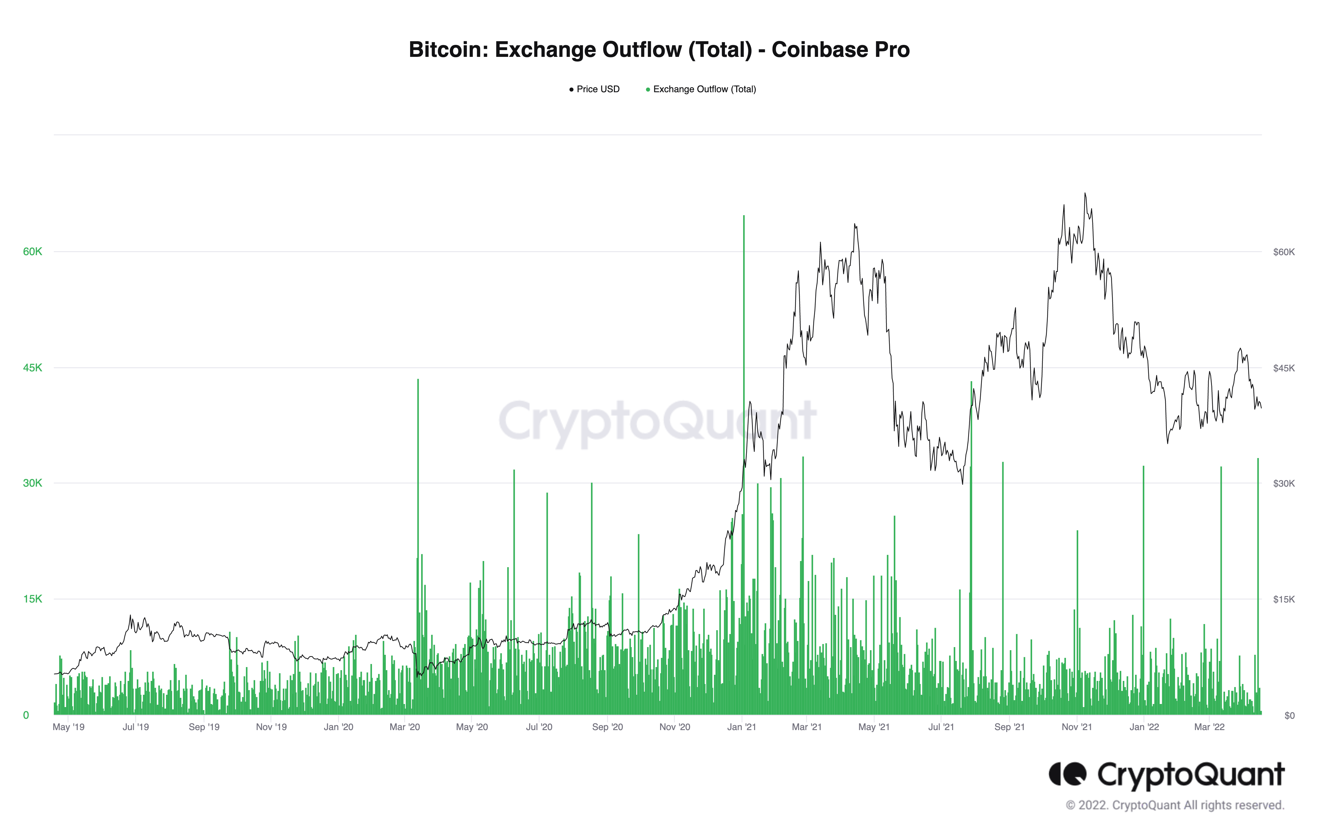 “30,000 BTC mengalir keluar dari Coinbase hari ini,” ujarnya melalui akun Twitter.