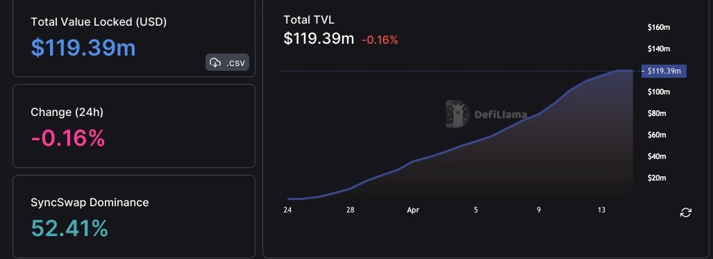 ZkSync Era berhasil meraih total value locked (TVL) hingga $119,39 juta sejak diluncurkan, menurut data DeFiLlama. Angka ini cukup jauh dengan TVL Polygon zkEVM yang hanya mencapai $1,5 juta.