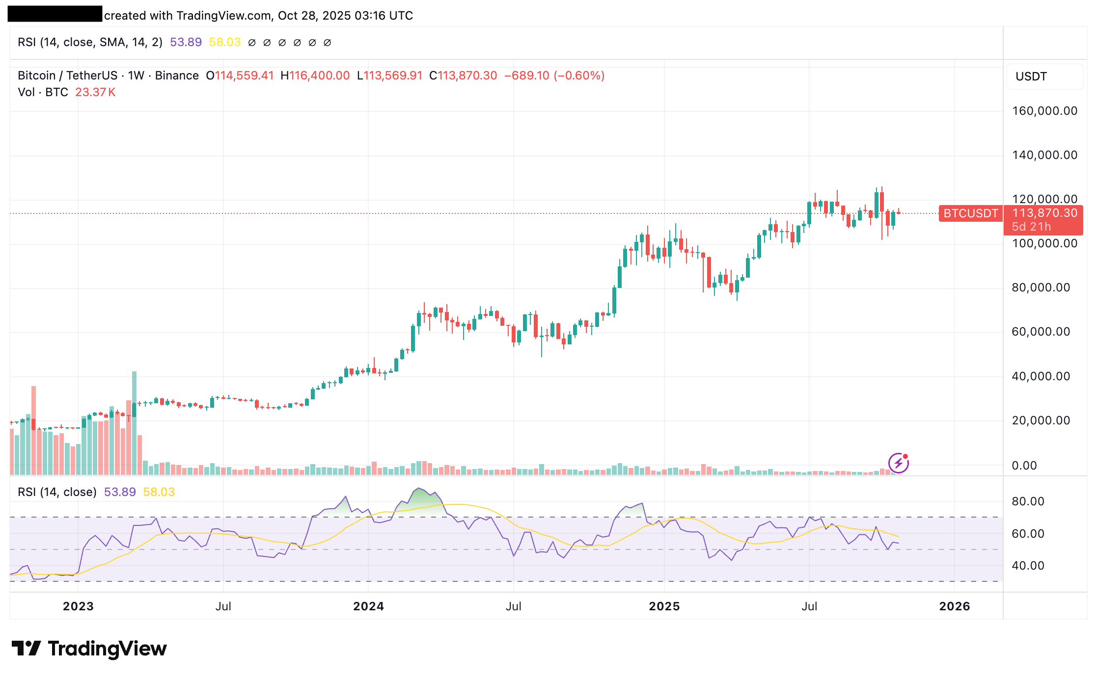 BTC/USDT 1 week via Tradingview
