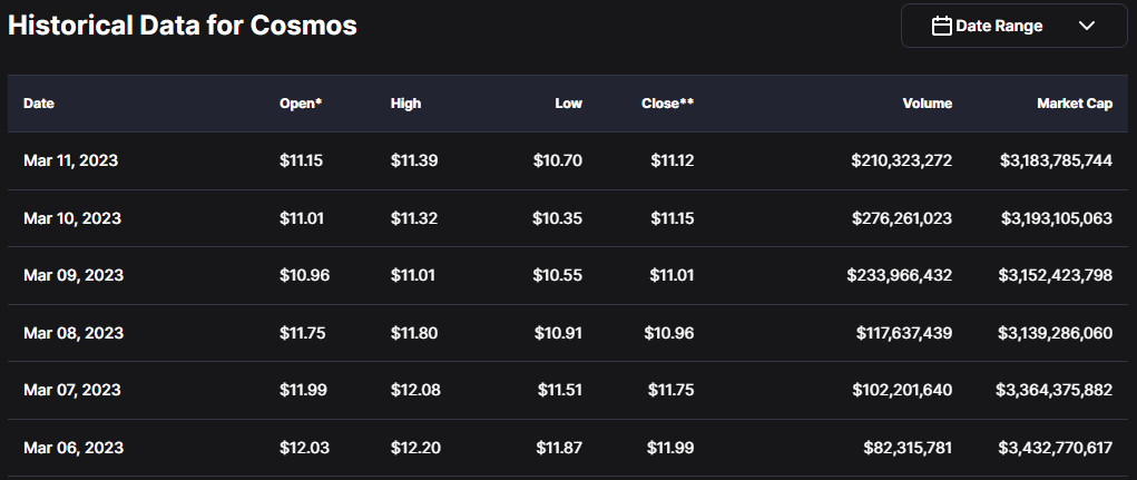 Historikal Data ATOM by: Coinmarketcap.