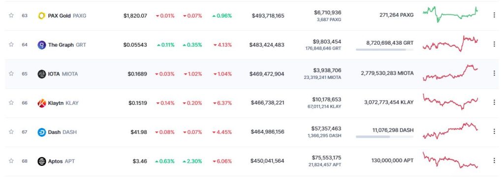 Kapitalisasi pasar Aptos telah melewati sejumlah proyek kripto primadona lainnya, seperti Lido DAO (LDO), Cronos (CRO), Filecoin (FIL), Decentraland (MANA), The Sandbox (SAND), Fantom (FTM), Terra Classic (LUNC), Chiliz (CHZ), PancakeSwap (CAKE), Aave (AAVE), Tezos (XTZ), Stellar (XLM), Bitcoin Cash (BCH), dll.