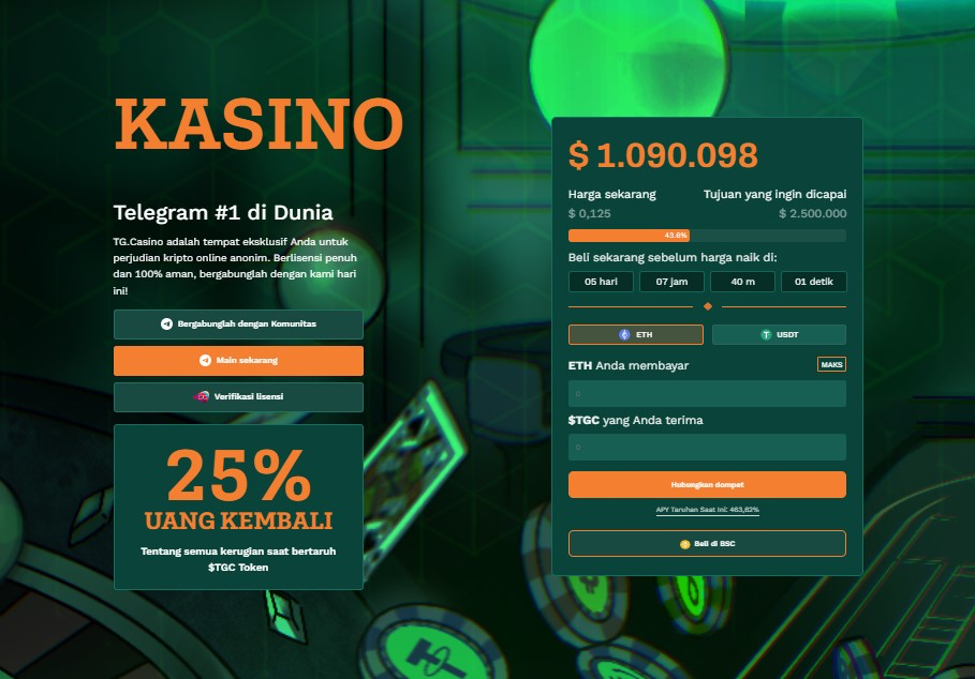 Trader berpengalaman seringkali menggunakan bear market untuk mengumpulkan token yang bisa menjadi pemenang saat siklus bull berikutnya. Salah satu token GambleFi baru, TG.Casino, adalah salah satu cryptocurrency yang telah menarik perhatian para investor, dan berhasil mengumpulkan lebih dari $1 juta dalam tahap presale-nya.
