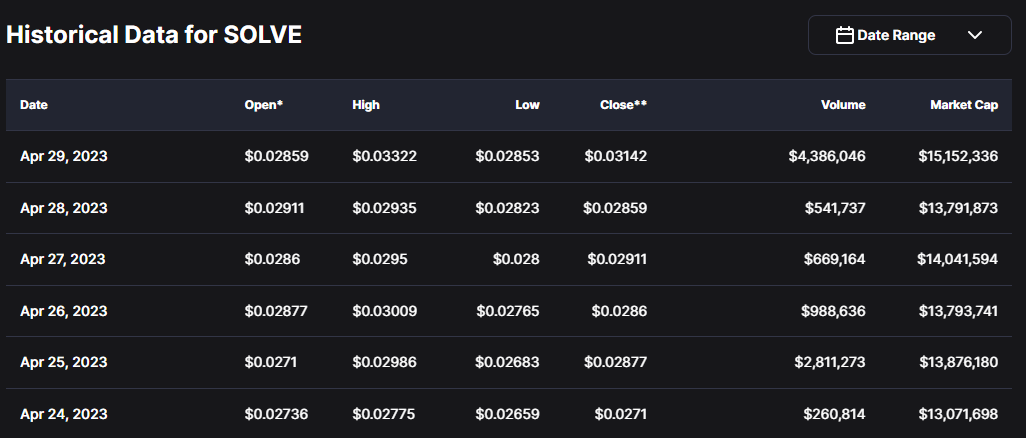 Kenaikan volume perdagangan dalam beberapa hari ini membuktikan bahwa pelaku pasar melirik SOLVE sebagai aset yang memiliki potensi untuk meraupkeuntungan. Pengumuman penting tanggal 3 Mei menjadi pemicu utama terhadap tren positif SOLVE saat ini.