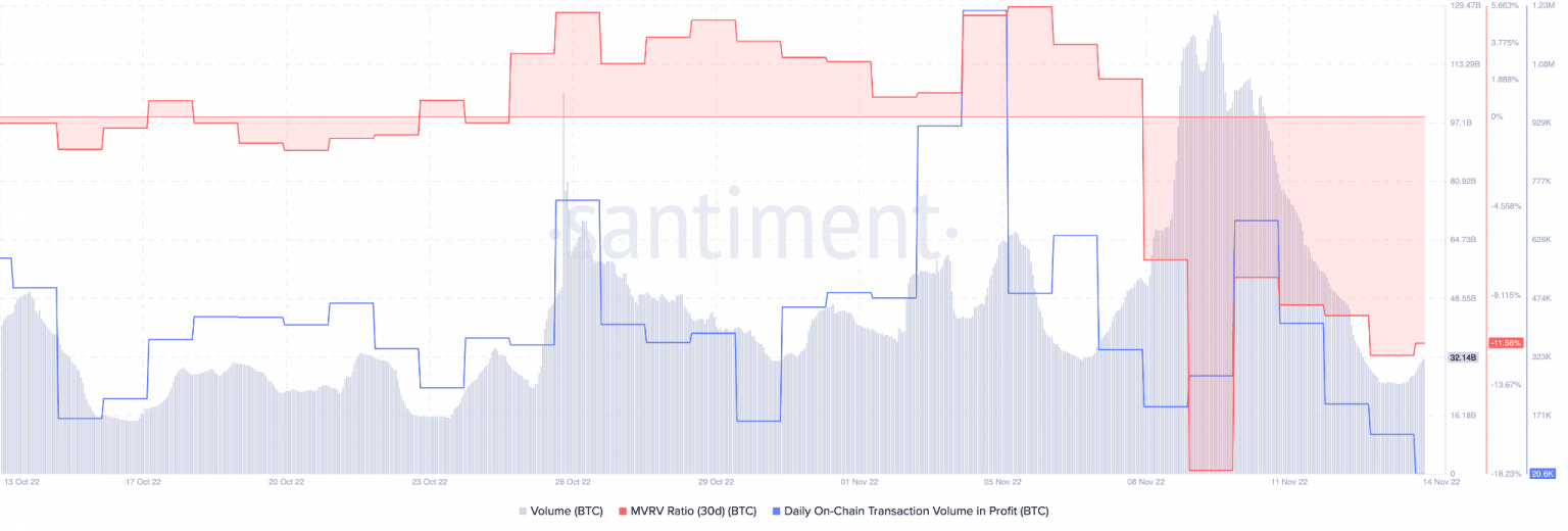Volume transaksi on-chain harian juga menurun selama beberapa hari terakhir yang menunjukkan hanya segelintir HODLers Bitcoin saja yang mendapatkan keuntungan. Rasio MVRV BTC juga menurun, menyiratkan bahwa sebagian besar HODLer berpotensi mengalami kerugian jika mereka semua menjual asetnya dengan harga saat ini.