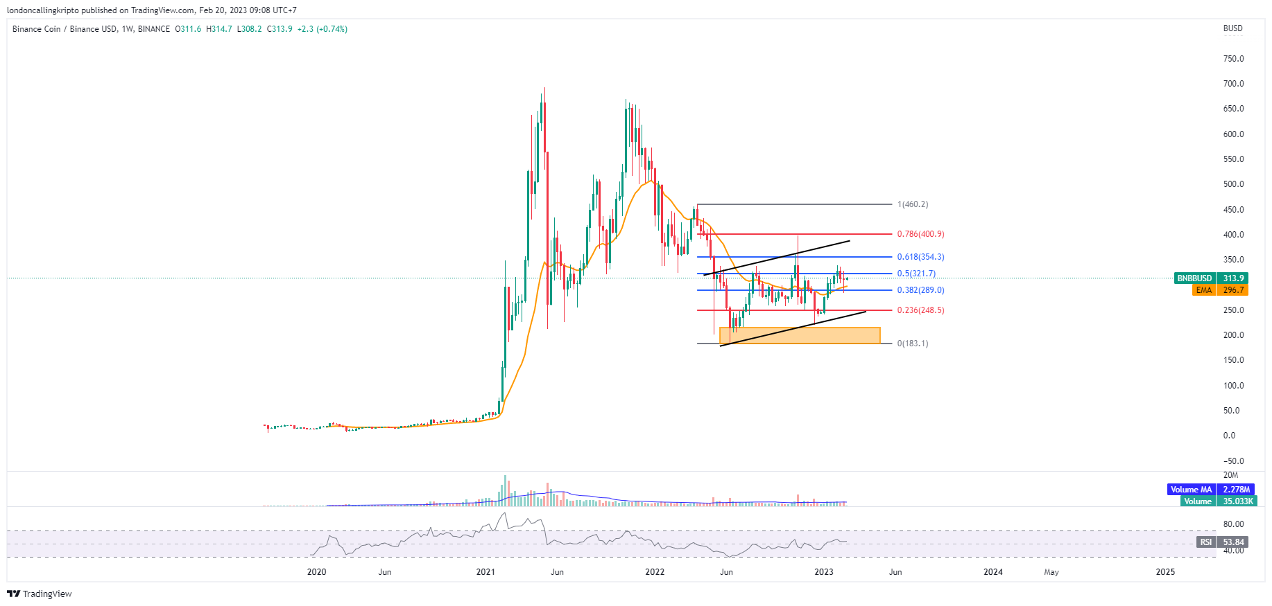 BNB/BUSD weekly chart Binance. Source: TradingView. By: Arli Fauzi.