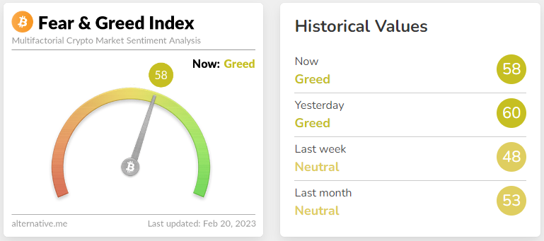 Sentimen pasar masih terlihat bullish dengan kondisi saat ini. Fear and greed index konsisten berada diatas level 50, dengan kategori Greed.
