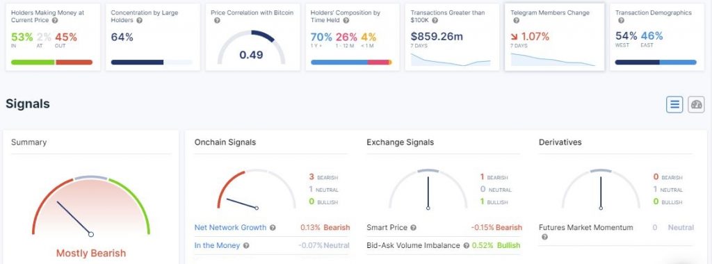 Data IntoTheBlock per 29 Desember menunjukkan sekitar 53% holder DOGE mendapat untung dari harga DOGE terkini. Sisanya sebanyak 45% merugi, dan 2% ada di titik impas. Untuk BTC dan ETH, jumlah holder yang memperoleh keuntungan sepanjang 2022 mencapai 44% dan 46%.