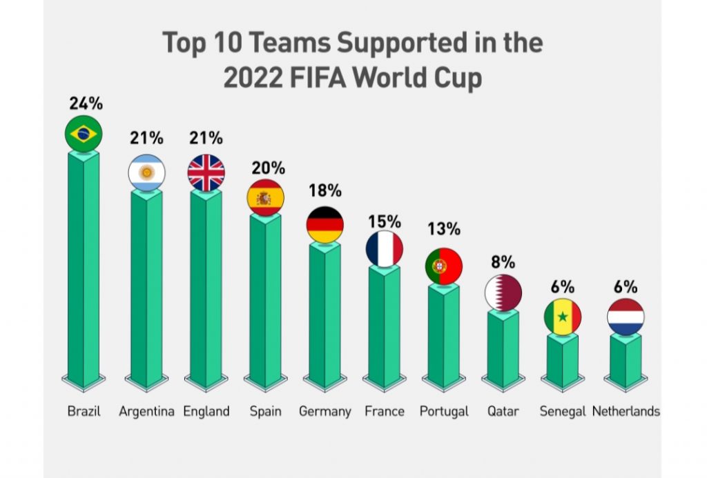 Sebanyak 24% investor kripto mengatakan bahwa sepakbola adalah olahraga favorit mereka, dan 48% di antaranya tertarik untuk memperdagangkan fan token timnas selama Piala Dunia 2022.