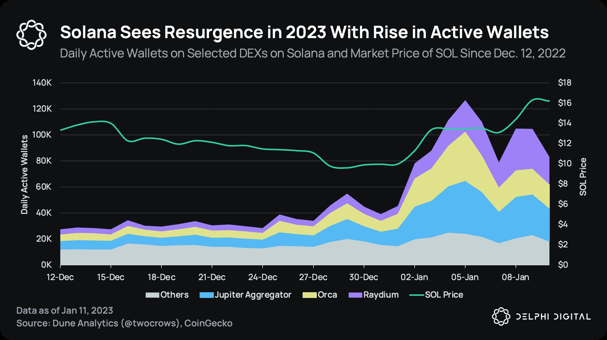 Wallet aktif di DEX Solana. (sumber: Delphi Digital).