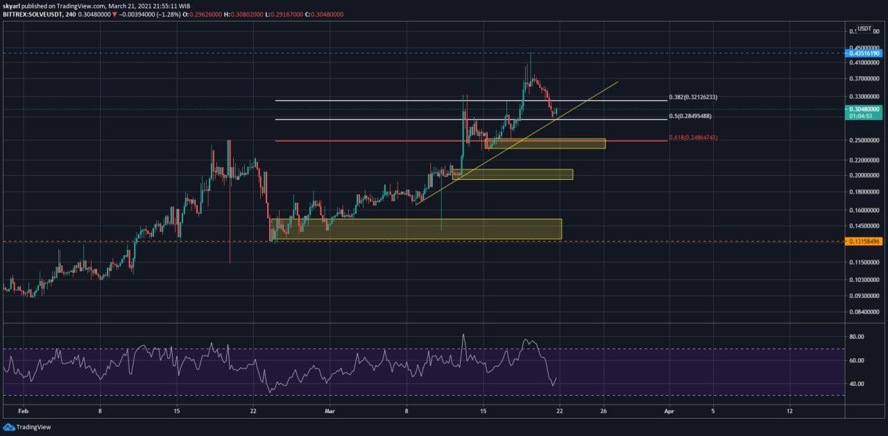 Pergerakan harga Solve masih berada pada trend bullish nya , meskipun pada hari Minggu, 21 Maret 2021 mengalami koreksi.