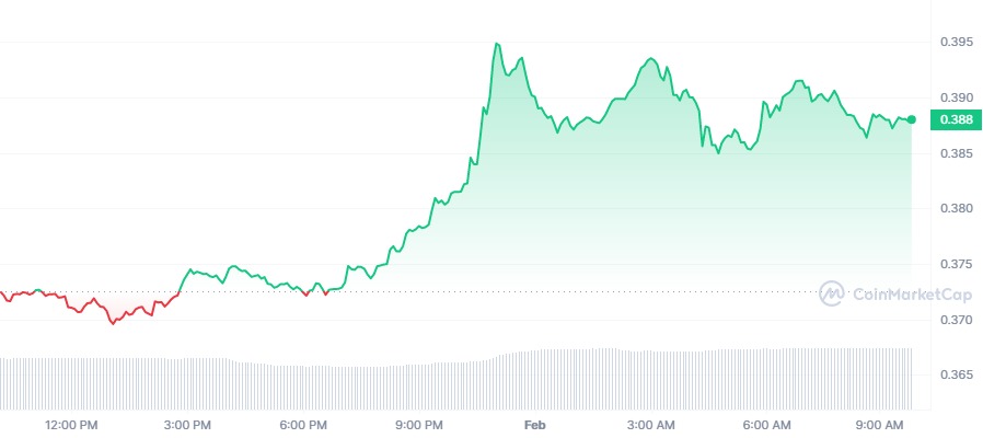 Sentimen bullish ADA sudah terlihat sejak sepekan lalu dengan kenaikan besar hingga 10%. Menurut data CoinMarketCap, saat ini ADA diperdagangkan di harga $0,3881.