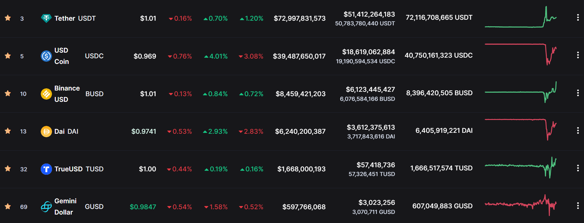 Depegging yang dialami USDC ini juga diikuti stablecoin lainnya. Sejumlah stablecoin yang ikut mengalami depegging antara lain Binance USD (BUSD), TrueUSD (TUSD), DAI, USDD, Gemini Dollar (GUSD), FRAX, LUSD, dll. Beberapa stablecoin yang tidak terdampak negatif adalah USTD dan DJED. Keduanya malah sempat naik cukup tajam saat USDC mengalami depegging. Seluruh stablecoin yang ikut terimbas depegging USDC kini perlahan telah kembali naik perlahan menuju harga 1:1 dengan dolar AS.