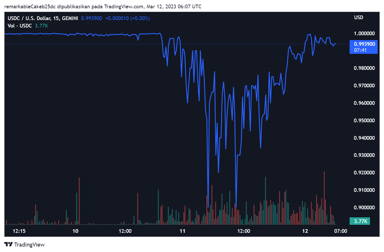 Sebelumnya, pada 11 Maret WIB, USDC sempat mengalami depegging cukup parah hingga di mencapai harga $0,87. Padahal, sebagai stablecoin, USDC seharusnya dapat mempertahankan pasak harga 1:1 terhadap dolar AS.