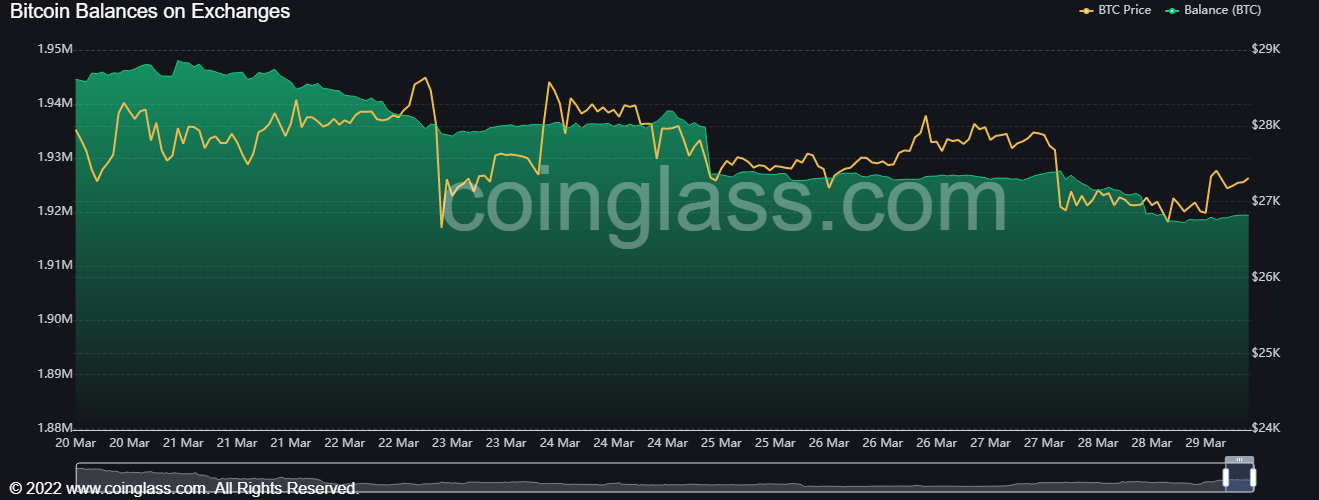 Secara keseluruhan, saldo Bitcoin dalam centralized exchange (CEX) juga terpantau terus berkurang sejak 20 Maret 2023. Sejak saat itu, tercatat 30.000 BTC sudah keluar dari CEX.