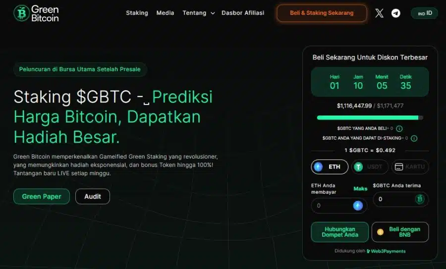 Green Bitcoin (GBTC) adalah koin micin yang menarik perhatian, menawarkan investor pendekatan ramah lingkungan dan peluang staking yang menarik.