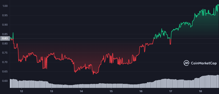 Di urutan pertama adalah token fan tim nasional Brasil (BFT) yang naik 15,71% dalam seminggu terakhir. Pada saat penulisan, harganya berada di kisaran $1. BFT dijalankan di atas kontrak Bitcichain.
