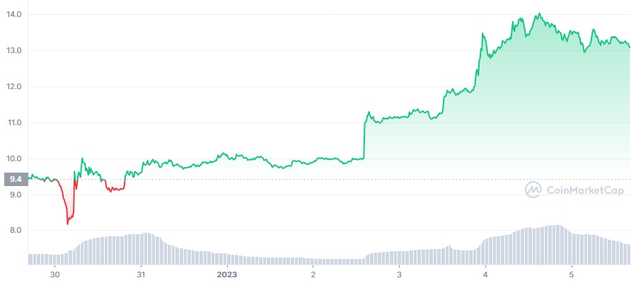 Menurut data CoinMarketCap, token SOL berhasil melonjak 40,22% pekan ini. Kini SOL diperdagangkan di harga $13,18.