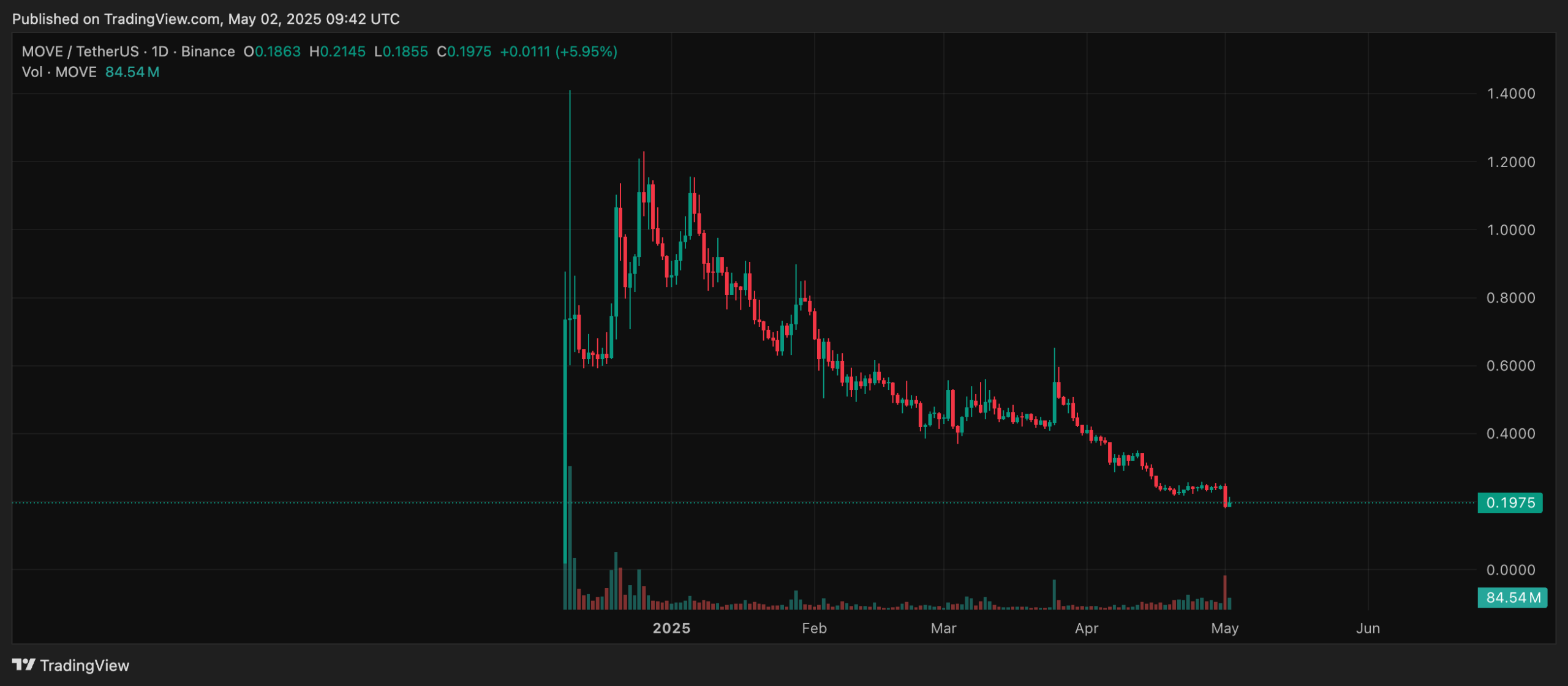 Pengumuman ini langsung memicu kepanikan pasar, menyebabkan MOVE jatuh ke level $0,195, pada perdagangan hari ini, Jumat 2 Mei 2025.