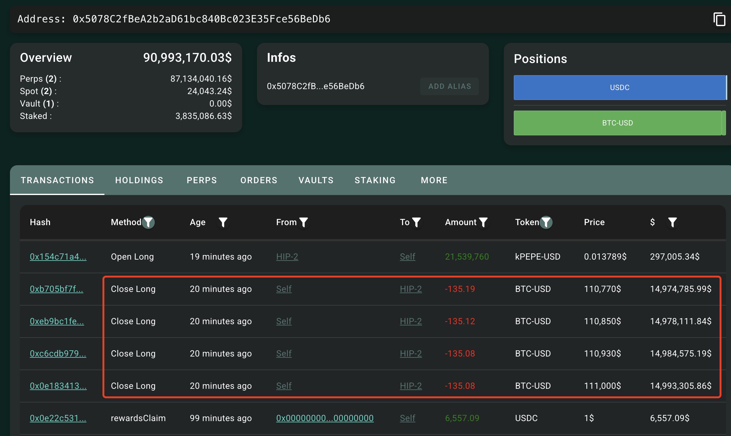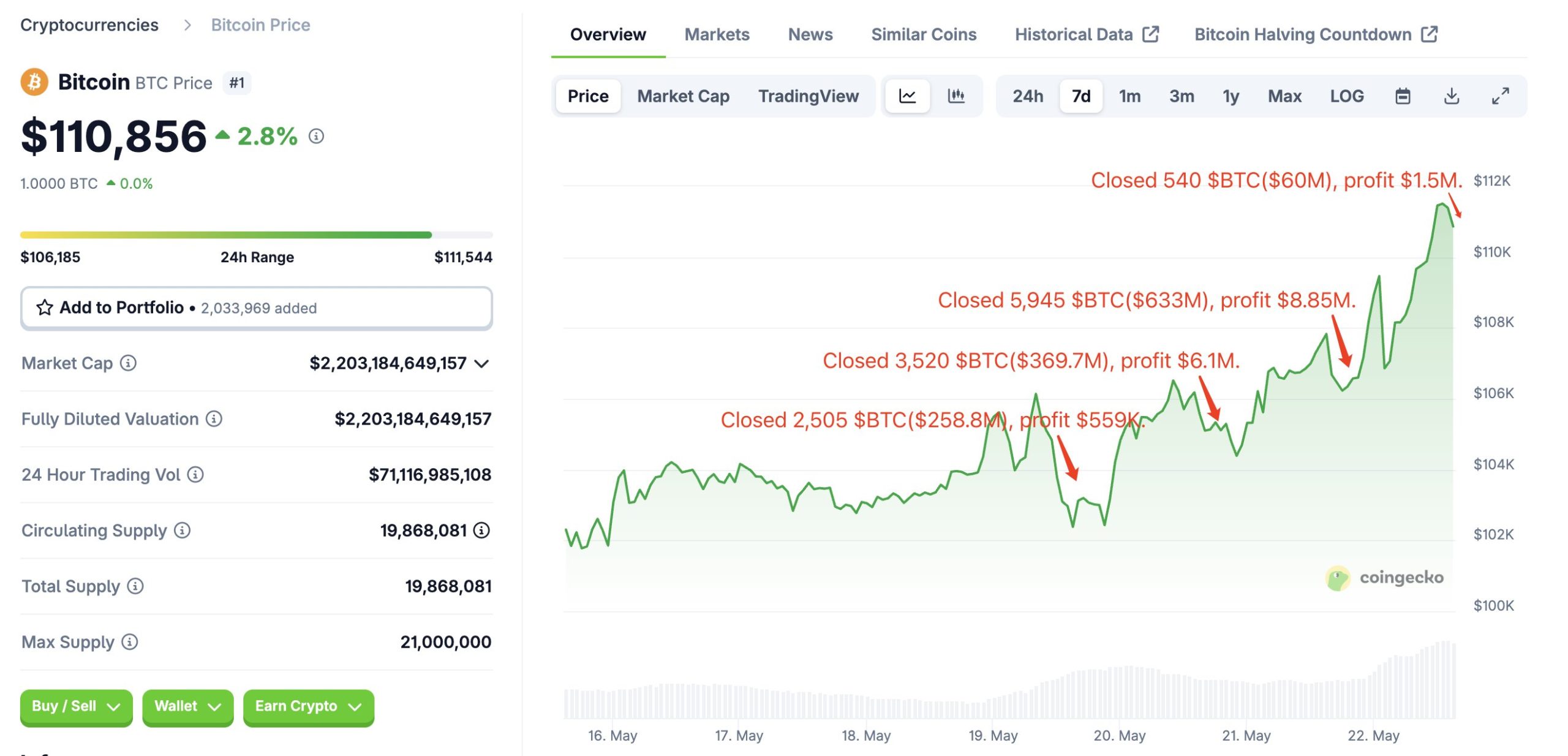 Namun, keadaan berubah drastis ketika Bitcoin menyentuh harga tertinggi baru dengan level $111.900. Hal ini membuat posisi “James Wynn” mencatat keuntungan belum terealisasi lebih dari $39 juta.