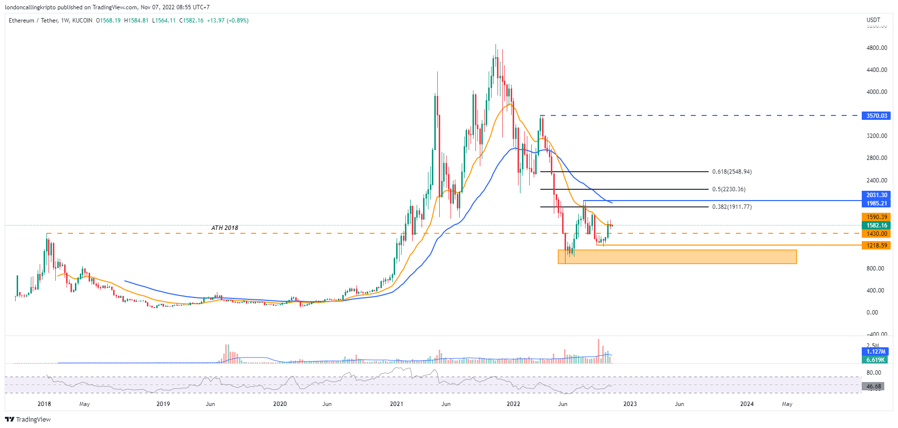 ETH/USDT weekly chart Kucoin. Source: TradingView. By: Arli Fauzi