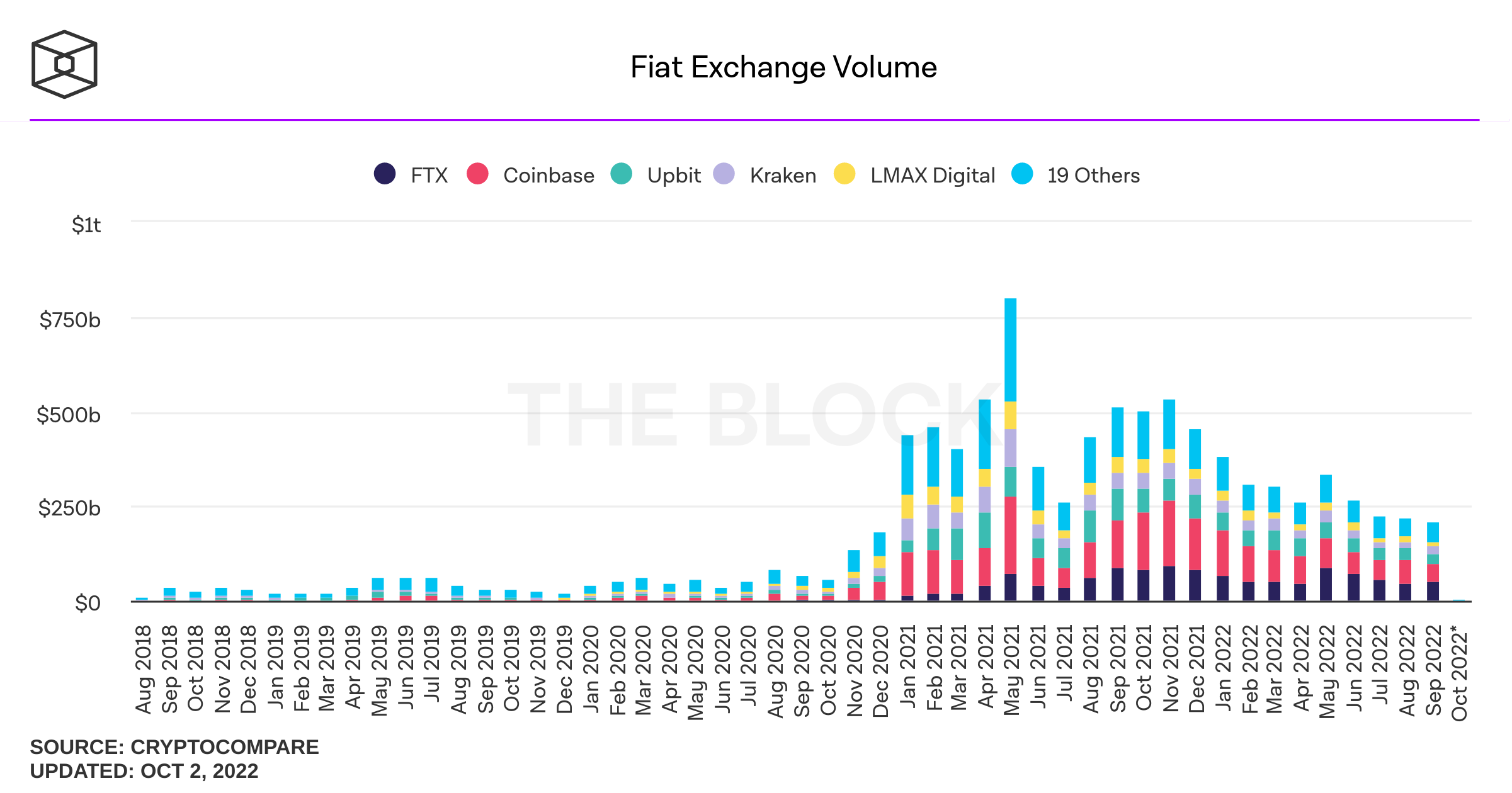 Total volume pertukaran fiat selama September mencapai $210,6 miliar, turun jika dibandingkan dengan bulan sebelumnya sebesar $219 miliar.